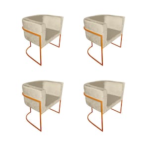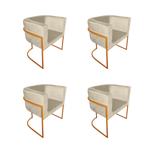 Kit 4 Cadeiras de Jantar Premium Base de Ferro Cobre Veludo Bege