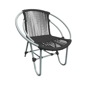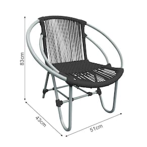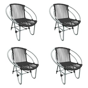 Kit 4 Cadeiras Decorativa Julia Em Corda Náutica E Base Em Alumínio Cinza/preta - Cor: Preto