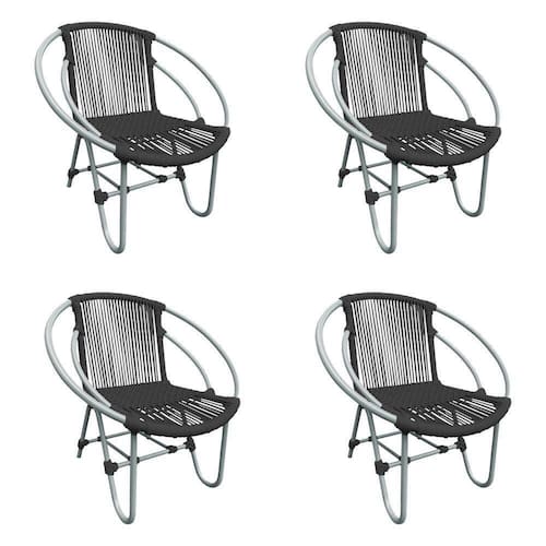 Kit 4 Cadeiras Decorativa Julia Em Corda Náutica E Base Em Alumínio Cinza-preta - Cor: Preto