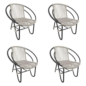 Kit 4 Cadeiras Decorativa Julia em Corda Náutica e Base em Alumínio Preta/ Areia - Bege