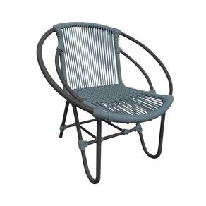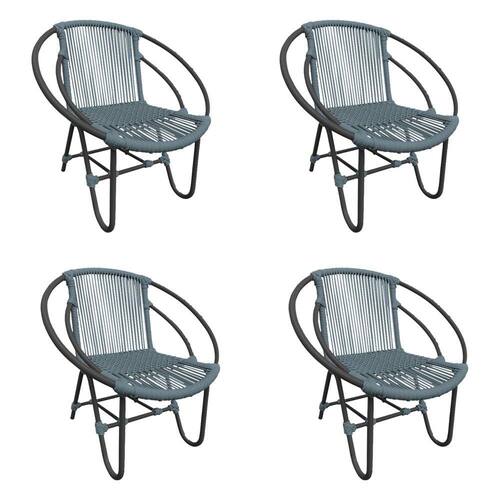 Kit 4 Cadeiras Decorativa Julia em Corda Náutica e Base em Alumínio Preta/ Cinza