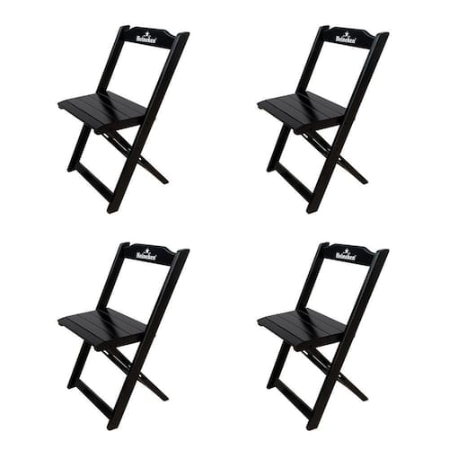 Kit 4 Cadeiras Dobráveis Madeira Personalizada Hei Preta - Cor: Preto