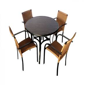 Kit 4 Cadeiras e Mesa com Tampo Ripado em Alumínio e Ombrelone para Piscina, Jardim, Edícula, Área - Trama - Preto