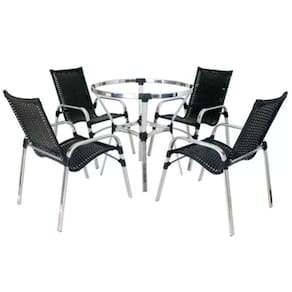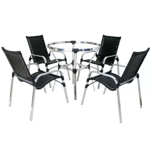 Kit 4 Cadeiras Emily E Mesa Ascoli Adaptada Em Alumínio Par Preto