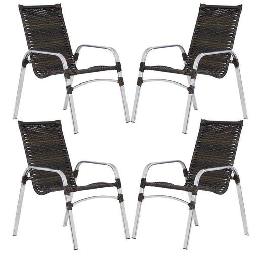 Kit 4 Cadeiras Emily em Alumínio e Fibra Sintética Trama - Marrom