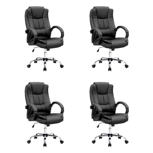 A cadeira Melbourne é perfeita para salas presidenciais, o conforto proporcionado pelo encosto e braços revestidos em PU, unidos ao sistema relax para acompanhar o balanço do corpo, proporciona conforto com seu design luxuoso! Altura do Conjunto: 123 cm Ambiente: null Ambiente Principal: Escritório Cor: Preto Cor do Produto: Preto Informação Complementar: 4x Cadeira Escritório Giratória Presidente Melbourne Fratini Preto Largura: 64 cm Altura: 123 cm Peso: 15,5 kg Profundidade: 69 cm Necessita Montagem: Sim