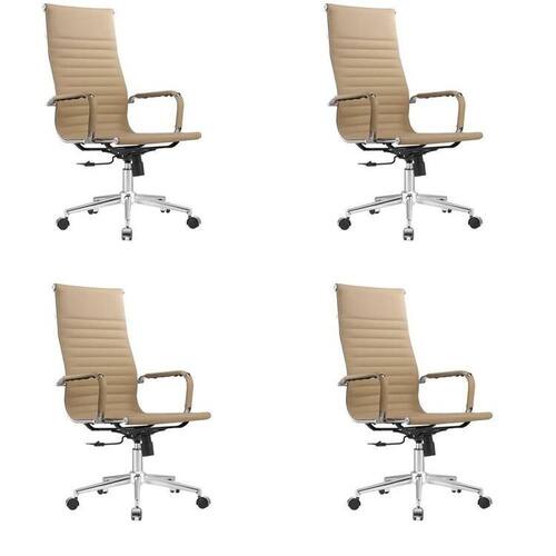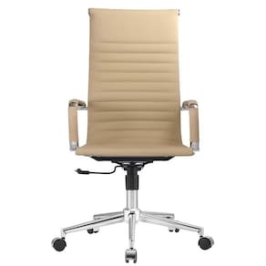 A cadeira Manhattan Presidente é toda revestida em couro ecológico com costuras horizontais, ela também possui sua base e detalhes em aço cromado, o que garante resistência e durabilidade à cadeira! Por possuir seus braços também revestidos em couro ecológico e possuir sistema relax, ela é super confortável para grandes espaços de tempo sentados. Altura do Conjunto: 113 cm Ambiente: null Ambiente Principal: Escritório Cor: Bege Informação Complementar: 4x Cadeira Esteirinha Presidente Giratória Estofada com Rodízios Espresso Móveis Cinza Largura: 56 cm Altura: 113 cm Peso: 12,15 kg Profundidade: 60 cm Necessita Montagem: Sim