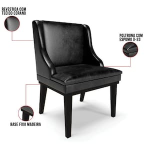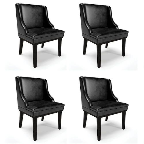 Kit 4 Cadeiras Estofadas Base Fixa de Madeira Preto Lia Sintético Premium Preto - Ibiza