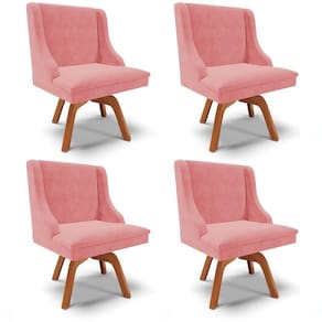 Para criar uma Sala de Jantar linda e confortável, basta escolher os móveis certos! Por isso, apresentamos o Kit 4 Cadeiras Estofadas Base Giratória de Madeira Lia Suede Rosê, da Ibiza, confira!