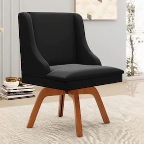 A Cadeira Estofada Lia possui design elegante e é ideal para quem busca aconchego e sofisticação na hora das refeições. A Base Giratória de Madeira é resistente e permite que se movimente com facilidade e ainda suporta até 120kg! Além disso, a Cadeira Estofada é produzida com Madeira Eucalipto de reflorestamento, ecologicamente correta e o estofado é composto em espuma macia D-23 e revestido em Veludo, tecido clássico, elegante, macio, agradável ao toque, além de resistente e durável é versátil e combina com vários estilos de decoração!