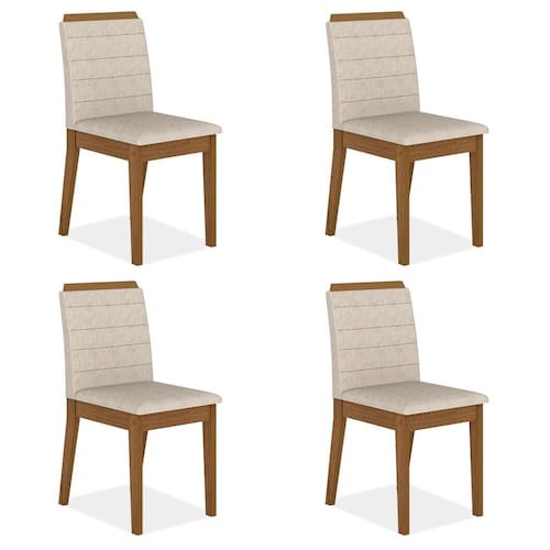 Kit 4 Cadeiras estofadas Cairo, tem um toque macio e suave. Além disso, se destacam pelo design moderno e a praticidade no dia a dia, sem precisar abrir mão do conforto.