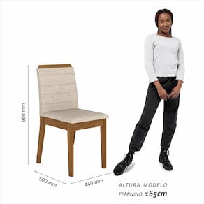 Detalhes Técnicos das Cadeiras: -Acabamento da Cadeira: Assento e Encosto Tapeçados -Almofada do Assento: Fixa -Cadeira Estofada: Sim -Peso Suportado da Cadeira: 90KG -Facilidade da Montagem: Média -Tonalidade da estrutura da Cadeira: Freijó -Tonalidade do Tecido: Suede Bege - Assento: D16 -Encosto: D14 -Tipo de Pintura: UV Texturizada -Material da Estrutura: MDF 25mm e 18mm -Medida da Cadeira: 95CM x 44CM x 50CM