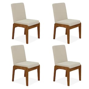 Detalhes Técnicos das Cadeiras: -Assento e Encosto Tapeçados - Almofada do Assento: Fixa - Cadeira Estofada: Sim - Peso Suportado da Cadeira: 90 KG - Facilidade da Montagem: Médial - Tonalidade da estrutura da Cadeira: Freijó - Tonalidade do Tecido: Bouclé Off White - Assento: D16 - Encosto: D14 - Tipo de Pintura: UV Texturizada - Material da Estrutura: MDF 25mm e 18mm - Medida da Cadeira: 87,5CM x 48,5CM x 59,5CM -Altura do assento ao chão: 45,4cm