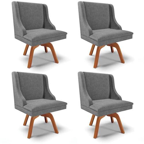 Kit 4 Cadeiras Estofadas Giratória para Sala de Jantar Lia Linho Grafite - Ibiza