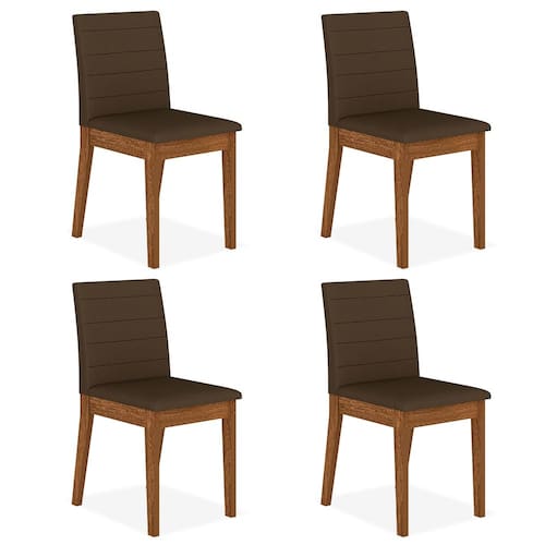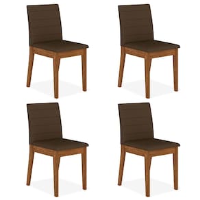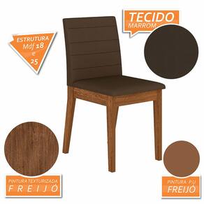 Detalhes Técnicos das Cadeiras: - Acabamento da Cadeira: Assento e Encosto Tapeçados - Almofada do Assento: Fixa - Cadeira Estofada: Sim - Peso Suportado da Cadeira: 90 KG - Facilidade da Montagem: Medial - Tonalidade da estrutura da Cadeira: Freijó - Tonalidade do Tecido: Suede Marrom - Assento: D16 - Encosto: D14 - Tipo de Pintura: UV Texturizada - Material da Estrutura: MDF 25mm e 18mm - Medida da Cadeira: 92CM x 44CM x 50CM