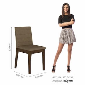 Detalhes Técnicos das Cadeiras: - Acabamento da Cadeira: Assento e Encosto Tapeçados - Almofada do Assento: Fixa - Cadeira Estofada: Sim - Peso Suportado da Cadeira: 90 KG - Facilidade da Montagem: Medial - Tonalidade da estrutura da Cadeira: Imbuia - Tonalidade do Tecido: Suede Capuccino - Assento: D16 - Encosto: D14 - Tipo de Pintura: UV Texturizada - Material da Estrutura: MDF 25mm e 18mm - Medida da Cadeira: 92CM x 44CM x 50CM