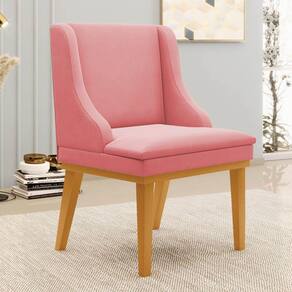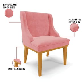 Kit 4 Cadeiras Estofadas para Sala de Jantar Base Fixa de Madeira Castanho Lia Suede Rosê - Ibiza