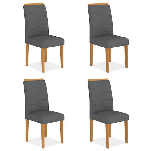 Kit 4 Cadeiras Vitória muito confortáveis, com toque macio e suave. Se destacam pelo design moderno e a praticidade no dia a dia, podendo ser utilizadas em diversos ambientes.