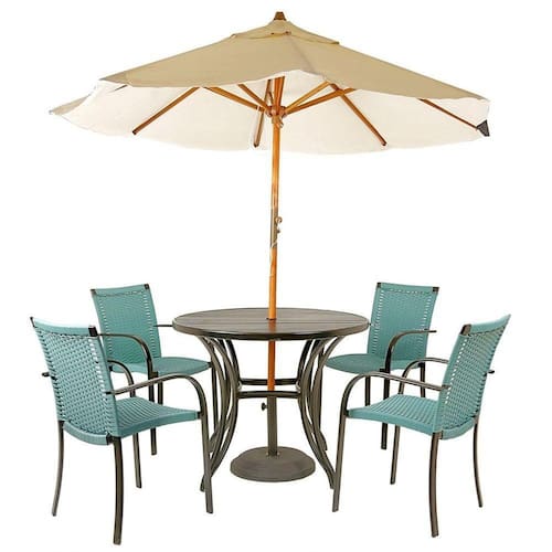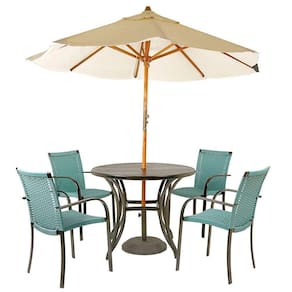 Kit 4 Cadeiras Ascoli Fibra Cor Azul Turquia + Mesa Ripado Preta Com Central Bege - Ideal Jardim, Piscina