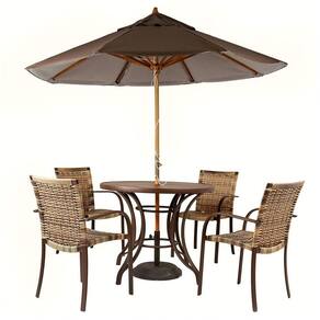 Kit 4 Cadeiras Ascoli Fibra Cor Cappuccino Com Mesa Ripado E Central Fibra Cor Marrom- Ideal Jardim, Piscina