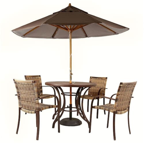 Kit 4 Cadeiras Ascoli Fibra Cor Cappuccino Com Mesa Ripado E Central Marrom- Ideal Jardim, Piscina