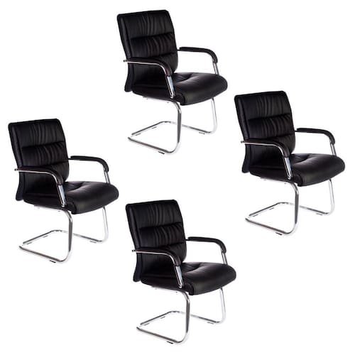 Kit com 4 Cadeiras Escritório Fixa Interlocutor Estofada Preta W-50A