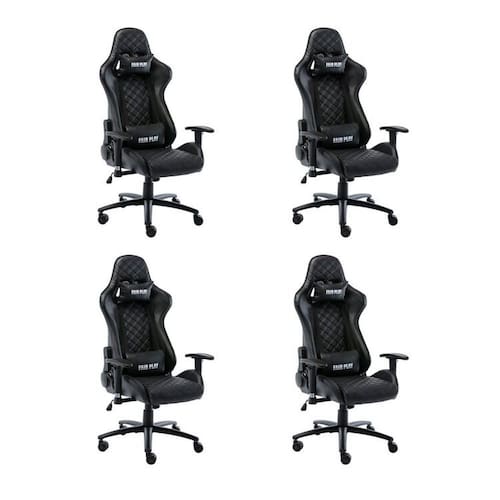 A cadeira Gamer que você precisa! A Gamer Fair Play é toda em couro ecológico com sua base em aço. Ela possui o sistema relax e seu encosto inclina até 180° ficando totalmente deitada, o que torna ela ainda mais confortável. Além de possuir regulagem da altura do braço, para que se adeque a qualquer mesa que for encostada. Altura do Conjunto: 136 cm Ambiente: null Ambiente Principal: Escritório Cor: Preto Cor do Produto: Preto Informação Complementar: 4x Cadeira Gamer Giratória Fair Play Fratini Preto Largura: 55 cm Altura: 136 cm Peso: 15,69 kg Profundidade: 55 cm Necessita Montagem: Sim