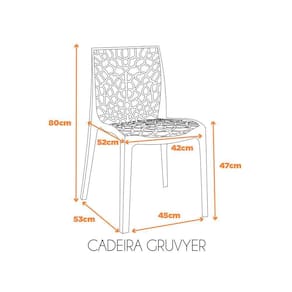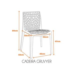 Combinando inovacao, criatividade e versatilidade, a cadeira Gruvyer e perfeita para ambientes corporativos ou residenciais! Ela se encaixa perfeitamente nos mais diversos tipos de ambientes, dando charme e sofisticacao em areas externas e internas. O Materia l e de simples limpeza e manutencao, e seu armazenamento e facilitado por ser empilhavel.