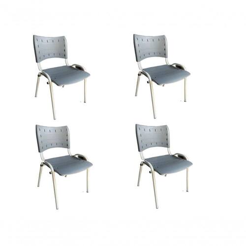 Kit 4 Cadeiras Iso Para Escola Escritório Comércio Cinza Base Branca
