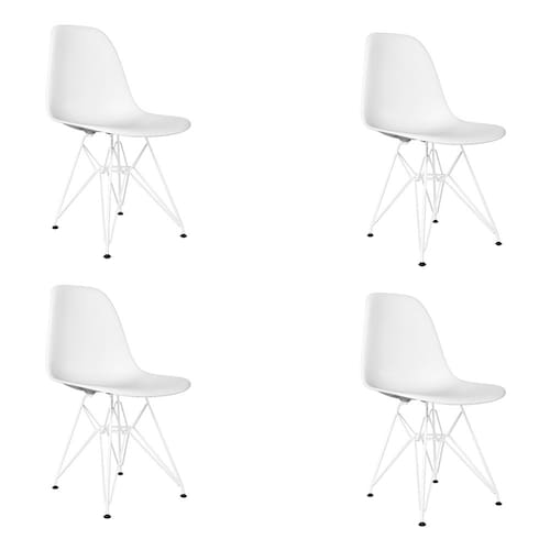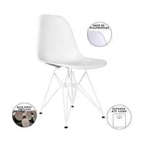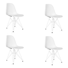 Kit 4 Cadeiras Jantar Assento Branco Eiffel Eames Base Ferro Branco