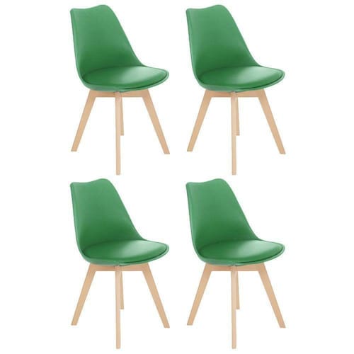 Kit 4 Cadeiras Jantar Cozinha Leda Eames Com Assento Estofado Verde Bandeira Kit 4 cadeiras jantar cozinha Leda Eames com assento estofado Verde bandeira - Características Gerais do Produto: - Material do assento: PU sintético - Material da base: Madeira - Altura do assento: 44 cm - Largura do assento: 48 cm - Material do encosto: Polipropileno - Profundidade do assento: 43 cm - Distância entre os pés: 42 cm - Peso suportado: 130 kg - Limpeza e cuidados: Pano úmido sem aplicação de produtos químicos ou abrasivos - Necessita montagem: Sim Acompanha o produto: - 4 - Cadeiras jantar cozinha Leda Eames com assento estofado Garantia: - 90 dias