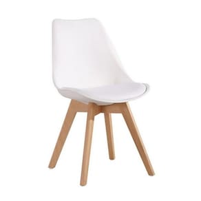 Do designer finlandes Eero Saarinen, a cadeira com assento estofado Saarinen representa um trabalho icônico de design da década de 50, juntamente com a Eames. Sua concha ergonômica é produzida em PP (Polipropileno) e conta com assento fixo em tecido sintetico (PU). Seus pés são feitos em madeira com ótimo acabamento.