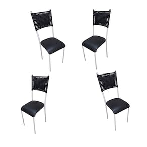 Kit com 4 Cadeiras para Cozinha e Sala de Jantar em Metal Branco com Encosto em Fibra Sintética Preta e Assento Estofado em Corino Preto. Complete sua cozinha ou sala de jantar com mais estilo e conforto! Este kit com 4 cadeiras combina design moderno com materiais resistentes. A estrutura é feita em metal pintado com tinta epóxi branca, o encosto é revestido por fibra sintética junco na cor preta e o assento curvo estofado em corino preto, garantindo elegância, praticidade e conforto no dia a dia. - Ideal para cozinhas, salas de jantar e áreas gourmet; - Estrutura de metal branco com pintura epóxi resistente; - Encosto com acabamento artesanal em fibra sintética preta (junco); - Assento curvo estofado em corino preto, confortável e fácil de limpar; - Medidas de cada cadeira: Altura 100 cm, Largura 38 cm, Profundidade 41 cm; Estilo, durabilidade e praticidade para sua casa! Aproveite para renovar seu ambiente com esse kit completo e funcional. IMAGENS MERAMENTE ILUSTRATIVA! Marca: Não Informado