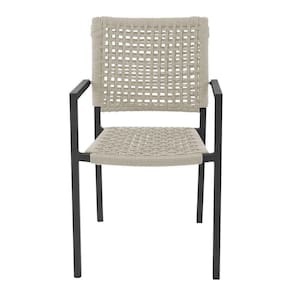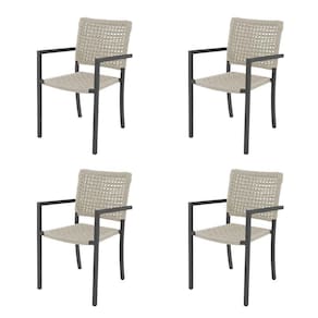 Kit 4 Cadeiras Marília Corda Náutica Base Em Alumínio Preto/areia - Cor: Bege