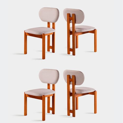 Kit 4 Cadeiras Turim - Madeira Macica e Tecido Linho