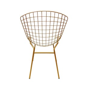 A Cadeira Bertoia Tubular é um produto de alta qualidade e possui um design clássico que certamente será o destaque da sua cozinha ou área gourmet. Com uma estrutura em pintura eletrostática epóxi cor dourado fosco, assento em e.v.a revestido com material sintético cor branco e concha fabricada em ferro maciço, essa cadeira é resistente e durável. Além disso, seus pés são produzidos em tubo 5/8" reforçado, garantindo ainda mais estabilidade e segurança para seus usuários.