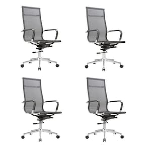 A cadeira Sydney Presidente é toda em tela com aço cromado. A tela garante resistência e conforto para quem estiver usando, além de também possuir seus braços revestidos, para que a pele não entre em contato com o metal direto. Ela possui um assento alongado, o que a torna perfeita para salas de diretoria e mesas de reunião, além de possuir o sistema relax para que seja melhor para seus usuários, travando na vertical, ou balançando de acordo com o movimento do corpo. Altura do Conjunto: 113 cm Ambiente: null Ambiente Principal: Escritório Cor: Cinza Informação Complementar: 4x Cadeira Para Escritório Presidente Giratória Aço Cromado Sidney Cinza Largura: 56 cm Altura: 113 cm Peso: 9,47 kg Profundidade: 60 cm Necessita Montagem: Sim