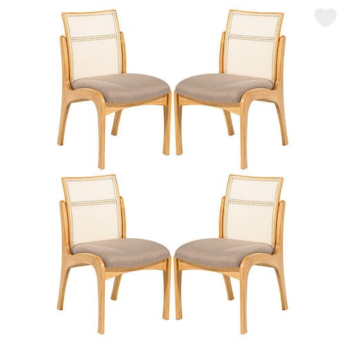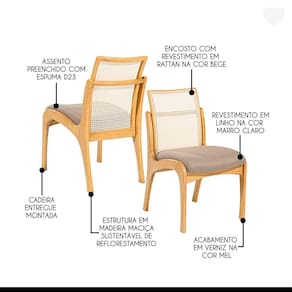 Ei, você aí! Está procurando por uma cadeira que seja a estrela do seu espaço? Então, você precisa conhecer a Cadeira Lisboa! Com um design moderno, ela é capaz de deixar qualquer ambiente mais sofisticado e confortável. Além disso é uma cadeira versátil que pode combinar com diversos ambientes da sua casa, dando um toque único. A Cadeira Lisboa é produzida com madeira maciça sustentável proveniente de reflorestamento com alta qualidade e resistência. Então não perca mais tempo e venha conhecer nosso catálogo e deixar sua casa mais completa e cheia de estilo. CARACTERÍSTICAS TÉCNICAS: - Produzido em Madeira Maciça Sustentável - Acabamento em Verniz na cor Mel - Encosto com Revestimento em Rattan com Fibra de Algodão Sextavada na cor Bege - Assento Estofado Preenchido com Espuma D23 - Revestimento do Assento em Linho na cor Marrom Claro L87 - Cadeira Entregue Montada *Kit Composto por QUATRO Cadeiras INFORMAÇÕES TÉCNICAS: Altura Total: 90 cm Altura Chão até Assento: 50 cm Altura Encosto: 44 cm Largura Total: 52 cm Largura do Assento: 48 cm Profundidade Total: 60 cm Profundidade Assento: 56 cm Peso: 8 kg INFORMAÇÕES ADICIONAIS: Garantia para defeitos de fabricação conforme Código de Defesa do Consumidor. - Produto em madeira maciça natural, podendo ocorrer variação no tom ou cor da madeira. - As imagens ambientadas são meramente ilustrativas e podem apresentar itens que não compõe o produto, as cores do produto podem variar de acordo com o monitor, a iluminação do ambiente ou sua percepção visual. - Limpeza: Deve ser feita com pano macio e seco ou levemente umedecido com água e sabão neutro. Não devem ser utilizados abrasivos. Marca: Império das Banquetas