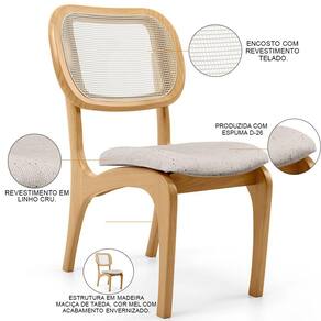 Procurando um modelo de cadeira de jantar que fuja do tradicional, mas que ao mesmo tempo combine elegância e modernidade?! Então, prepare-se para descobrir o Kit 04 Cadeiras Para Sala de Jantar Cozinha Estofada e Tela Mariah L02 Linho Cru, da Lyam Decor. Com design orgânico expresso nas linhas curvas, essa cadeira estofada, além de cumprir perfeitamente com sua funcionalidade, ao garantir conforto e bem-estar durante as refeições, vai também agregar charme e sofisticação à decoração seja da sua sala de jantar, da cozinha e até mesmo da sua área gourmet, já que detalhes como estrutura de Taeda maciça e encosto com tela harmonizam perfeitamente entre si, criando uma cadeira de madeira incrivelmente linda.