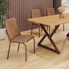 Moderna e elegante, esta cadeira apresenta assento e encosto estofados em tecido marrom, que proporcionam conforto e sofisticação ao ambiente. A estrutura em aço com pintura marrom confere robustez, estabilidade e um toque contemporâneo, tornando-a ideal para salas de jantar com estilo industrial ou minimalista. Uma peça versátil e atemporal, que combina facilmente com diferentes tipos de mesas e decorações. Ambiente Principal: Sala de Jantar codigo_ean: 7900288237606 Complexidade da Montagem: Baixa: pode ser montado por uma pessoa sozinha Cor: Marrom Cor do Produto: Marrom Escala de Brilho: Semi-Fosco Itens Inclusos: 4 Cadeiras, Manual de Montagem e Kit Ferragens. Linha ou Coleção: Malibu Manual de Montagem e Instalação: https://product-hub-prd.madeiramadeira.com.br/182676723/documents/8992b2eb-31ee-49d7-a84a-bade377d0df43162932493817562400674296.pdf Marca: Móveis Teixeira Material Principal: Aço Necessita Montagem: Sim Origem do Produto: Nacional Peso: 6,16 kg Quantidade de Itens: 4 Recomendações de Uso, Manutenção e Limpeza: Usar um pano de tecido macio e seco, evitar detergentes, alvejantes e produtos químicos de limpeza; no tampo usar tecido macio levemente umedecido. Sistema de Montagem: Parafusos Marca: Não Informado