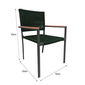 Kit 4 Cadeiras Piracicaba Corda Náutica Braço com Detalhe em Madeira Base Alumínio Preto/verde Musgo