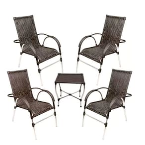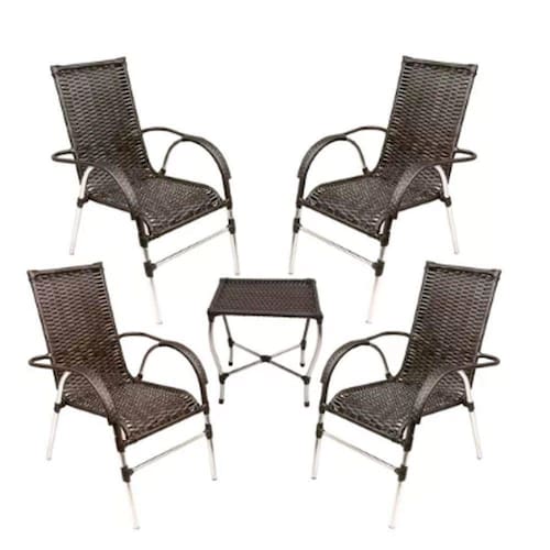 Kit 4 Cadeiras Poltrona Para Area Varanda e Mesa de Centro Venus em Fibra Sintetica Trama:
