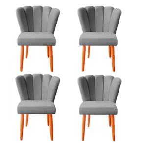 Kit 4 Cadeiras Poltrona Sala de Jantar Penteadeira Reforçada Decorativa Pétala Suede - Cinza