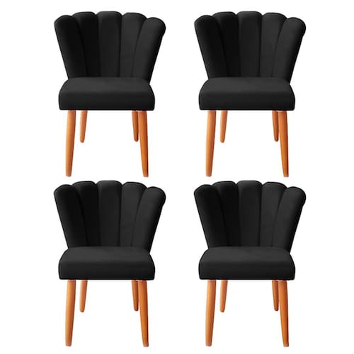 Kit 4 Cadeiras Poltrona Sala de Jantar Penteadeira Reforçada Decorativa Pétala Suede - Preto