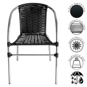 Caracteristicas: Estrutura em aluminio, leve, resistente e nao enferruja Acabamento em fibra sintetica anti-UV, ideal para ambientes externos Empilhavel, pratica para armazenar e organizar Vai montada, pronta para uso Suporta ate 120 kg