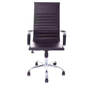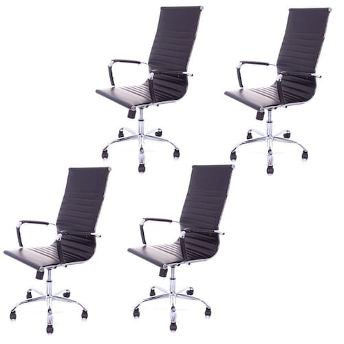 Kit com 4 Cadeiras Giratórias Charles Eames Esteirinha possui um misto de design e conforto, compondo um escritório super charmoso e confortável. O assento e o encosto em couro P.U. e os braços fixos (não possuem regulagem de altura) também são revestidos em PU garantindo maior durabilidade.