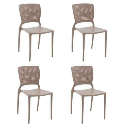 A Cadeira Safira Camurça Tramontina é feita de polipropileno e fibra de vidro.