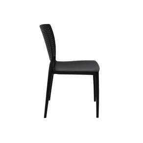 A Cadeira Safira Preta Tramontina é feita de polipropileno e fibra de vidro.