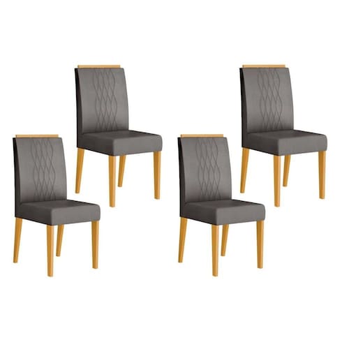 Cadeira Sala de Jantar Lia Kit 4 un Cedro/Suede Lunar - DJ Móveis