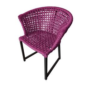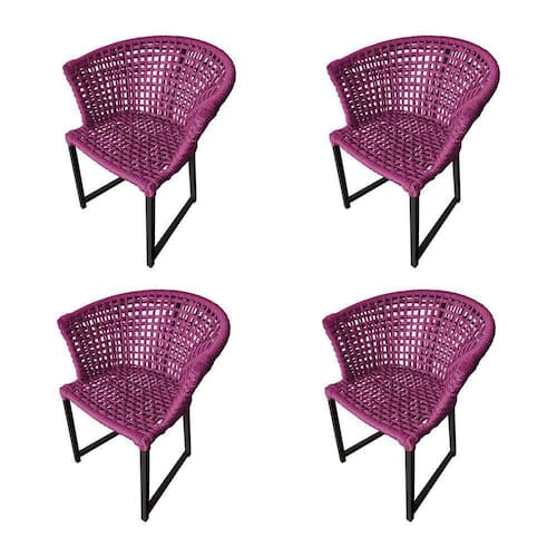Kit 4 Cadeiras Salinas Corda Náutica Base Em Alumínio Preto-rosa - Cor: Rosa